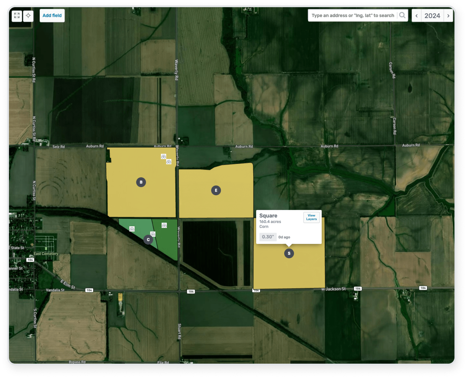 Get an aerial view of where your fields are and what you’ve planted with satellite maps, and access driving directions for your fields with the push of a button.