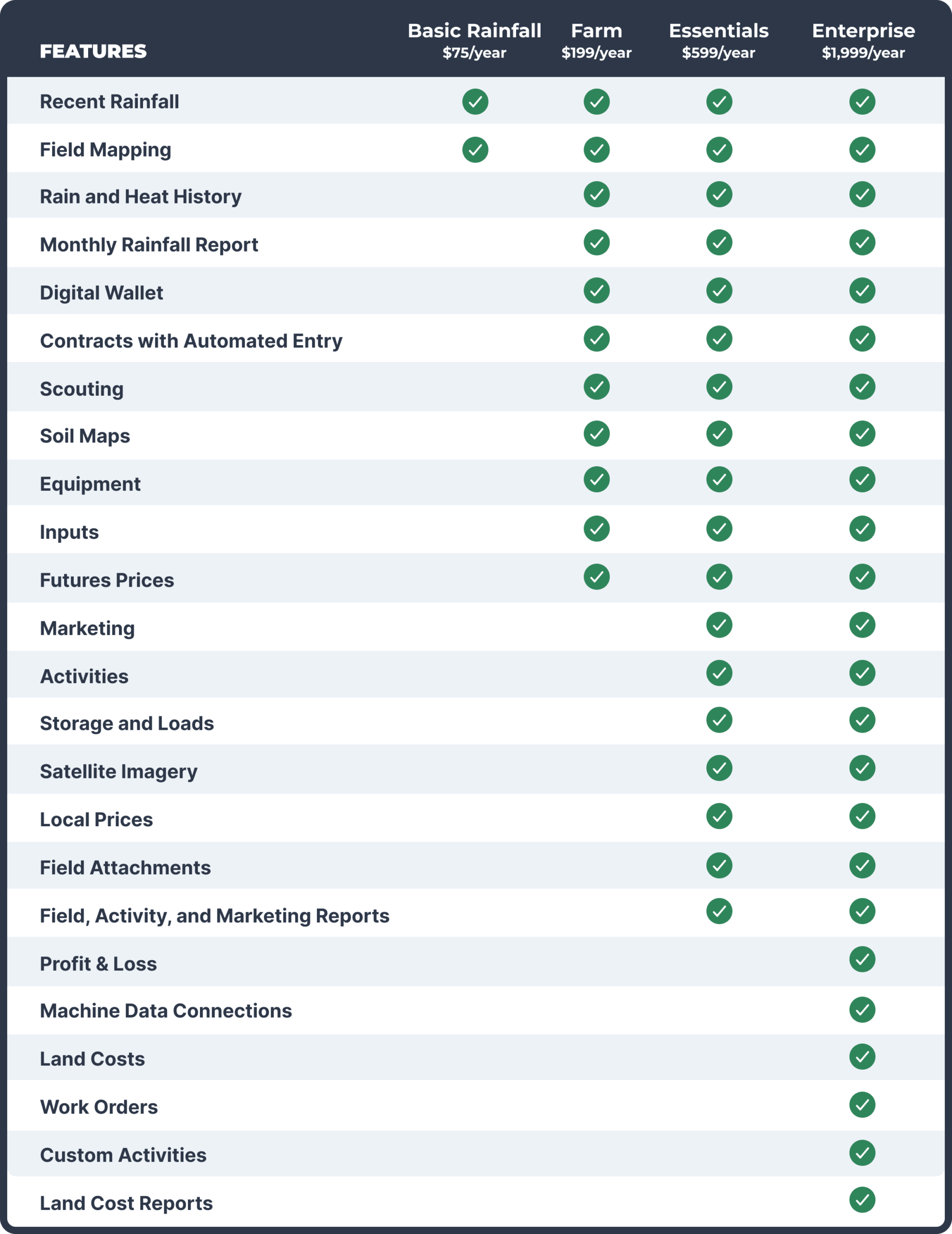For farms with more than 10,000 acres, please contact us for custom pricing.